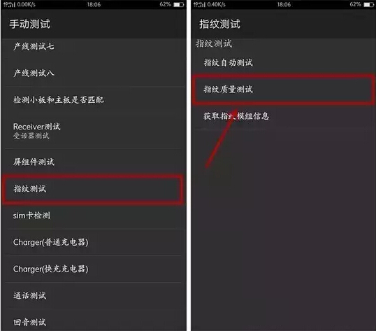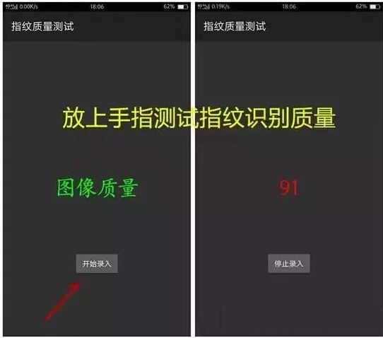 如果以上的操作都已經(jīng)正確的完成,指紋識(shí)別仍然無法正常使用,這個(gè)時(shí)候需要打開手機(jī)的撥號(hào)鍵輸入*#808#,然后找到指紋測(cè)試——指紋質(zhì)量測(cè)試——選擇開始錄入——然后手指放置上去看是否能夠有指紋圖像質(zhì)量的數(shù)據(jù)即可。