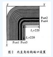 首先建立FPC圓弧拐角的結(jié)構(gòu)模型,為了更好地分析拐角結(jié)構(gòu)對(duì)信號(hào)傳輸?shù)挠绊?,將拐角處一段結(jié)構(gòu)不同的兩條傳輸線單獨(dú)提取出來(lái),如圖2所示。
