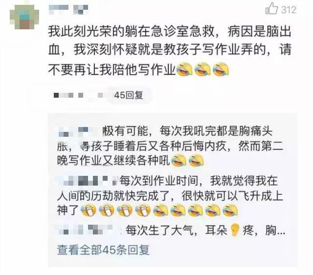 一位家長(zhǎng)的“病例”,來(lái)自一篇《老娘做錯(cuò)了什么,卻要陪孩子寫作業(yè)》文章的評(píng)論,不少爸媽對(duì)他們的“遭遇”感同身受,并表示終于找到了組織。