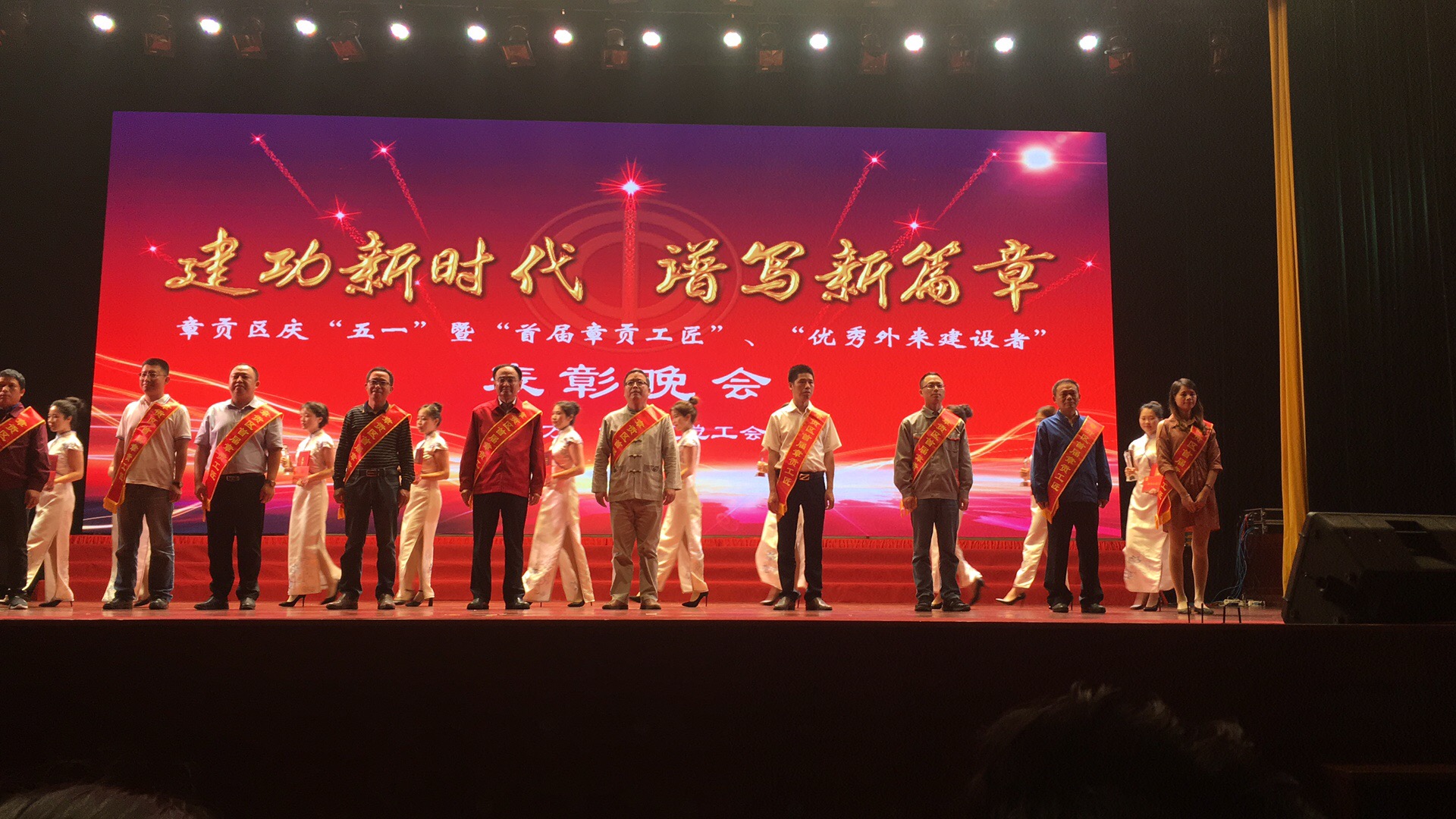 就在當(dāng)晚19:30分,章貢區(qū)慶“五一”暨“首屆章貢工匠”、“優(yōu)秀外來(lái)建設(shè)者”表彰晚會(huì)在區(qū)政府附樓禮堂隆重舉行,600余名企業(yè)、機(jī)關(guān)事業(yè)單位、群團(tuán)組織職工代表歡聚一堂,共同慶祝屬于全世界工人階級(jí)和勞動(dòng)人民共同的節(jié)日——“五一”國(guó)際勞動(dòng)節(jié)。