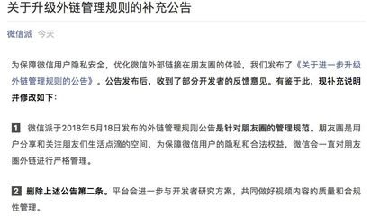 這一回是關(guān)于封號(hào)的。為保障用戶(hù)隱私安全,優(yōu)化微信外部鏈接體驗(yàn),微信團(tuán)隊(duì)近日對(duì)《微信外部鏈接內(nèi)容管理規(guī)范》相關(guān)規(guī)則進(jìn)行了進(jìn)一步升級(jí),新規(guī)將于5月29日起正式生效。