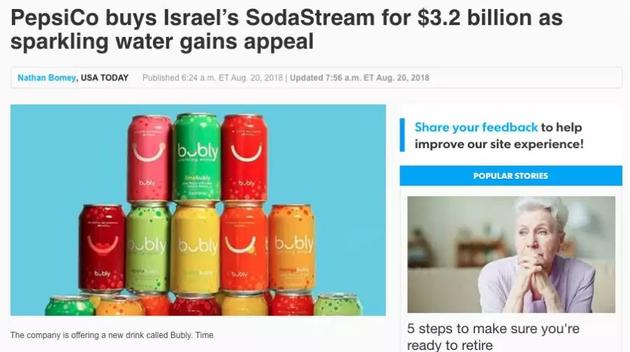 CNN的報道中稱,收購SodaStream將進一步提升百事公司對健康產(chǎn)品的定義。此外,自從SodaStream將自身品牌重新定位為一家蘇打水公司后,股價在過去的兩年中累計飆升了逾320%。