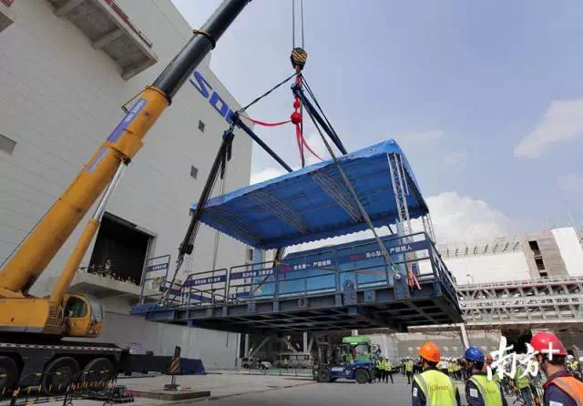 “轟隆隆……”伴隨著溫控柜開(kāi)柜聲,廣州富士康第10.5代8K顯示面板全生態(tài)產(chǎn)業(yè)園(超視堺8K項(xiàng)目)首臺(tái)曝光機(jī)開(kāi)始搬入,隨后由吊裝機(jī)進(jìn)行吊裝進(jìn)場(chǎng)。2月14日,園區(qū)第一臺(tái)8K高精度曝光機(jī)進(jìn)駐廣州增城工廠,設(shè)備調(diào)試將在今年6月完成,并按照原計(jì)劃在10月實(shí)現(xiàn)量產(chǎn)。