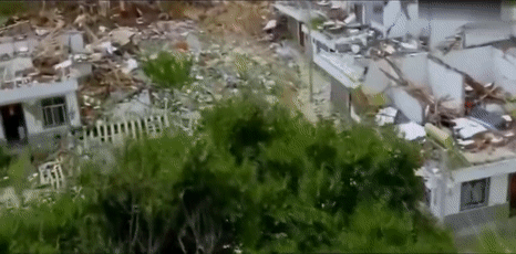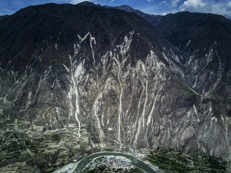 △ 2008年5月12日 汶川縣雁門鎮(zhèn)地動(dòng)山搖,山體驟然滑落,留下道道溝壑。