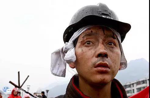 ▲一位頭部受傷、滿臉血跡的救災(zāi)人員在四川德陽地區(qū)的綿竹市救災(zāi)現(xiàn)場。