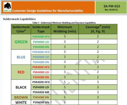 以上是太陽油墨產(chǎn)品特性表,可以發(fā)現(xiàn),綠色油墨比起其他顏色的油墨,具有更好的特性,尤其綠色的塞孔特性。