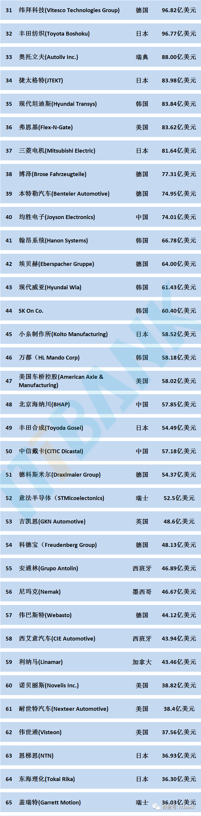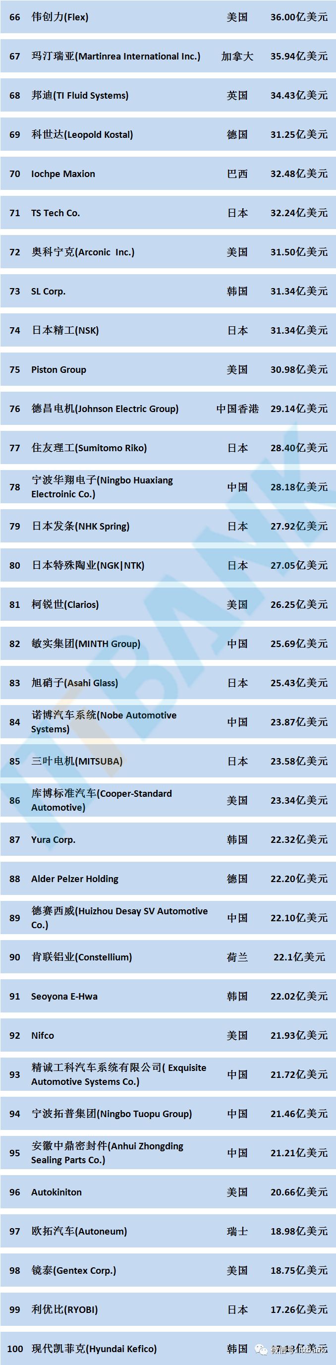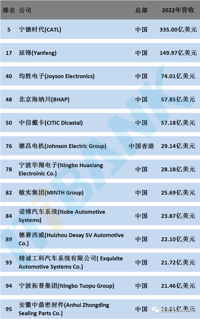 電池FPC廠了解到,2023年全球汽車零部件供應(yīng)商百強(qiáng)中國(guó)上榜企業(yè)排名如下: