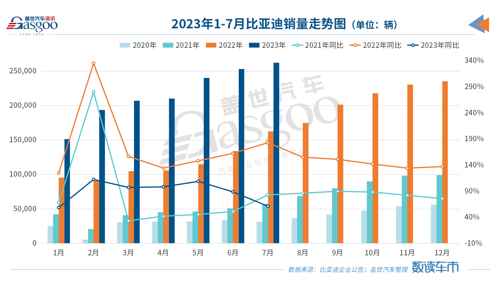 在7月車企銷量前十榜單上,自主和合資登榜的數(shù)量旗鼓相單,但月度銷量冠、亞軍,都被自主車企收入囊中。其中比亞迪依舊是一家獨大,月銷量超過26萬輛,是7月唯一一家銷量破20萬輛的國內(nèi)乘用車企業(yè)。