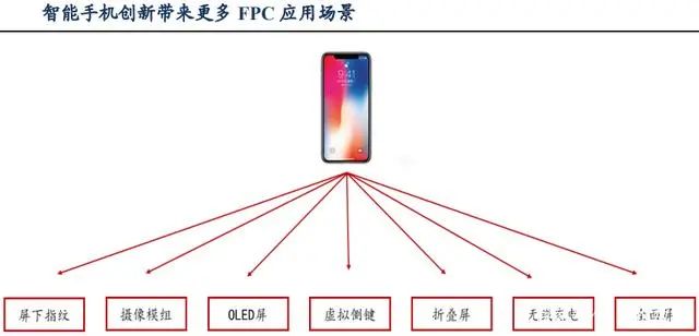 而隨著智能手機(jī)內(nèi)部的創(chuàng)新推動FPC應(yīng)用場景增多,誕生了更多需要用FPC軟板連接的新功能: