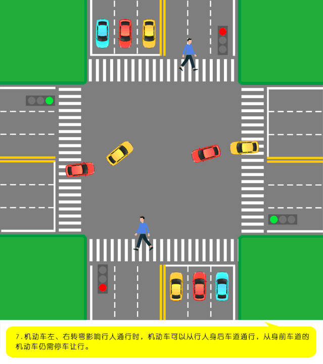 第四十七條規(guī)定,機動車行經(jīng)人行橫道時,應(yīng)當(dāng)減速行駛;遇行人正在通過人行橫道,應(yīng)當(dāng)停車讓行。機動車行經(jīng)沒有交通信號的道路時,遇行人橫過道路,應(yīng)當(dāng)避讓。