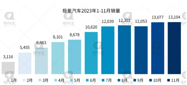 極氪汽車11月交付新車13,104輛,同比增長19%,環(huán)比上月增加了27輛。截止11月末,極氪汽車今年累計交付新車105,209輛。到目前為止,極氪汽車累計交付輛為18萬輛。