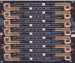型 號(hào):RM01C00187A層 數(shù):1板 厚:0.12mm材 料:單面有膠電解銅 厚:1/2 OZ表面處理:沉金2微英寸最小線寬/線距:0.1mm/0.08mm特 點(diǎn):外形復(fù)雜