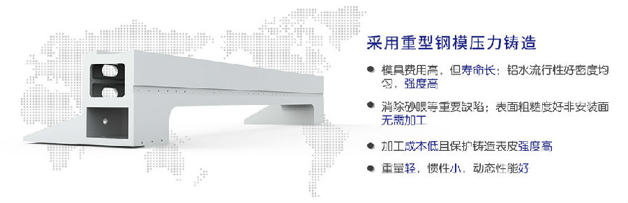 采用一體化設(shè)計思路,重型碳素機(jī)構(gòu)床身,去應(yīng)力退火處理、龍門銑加工中心